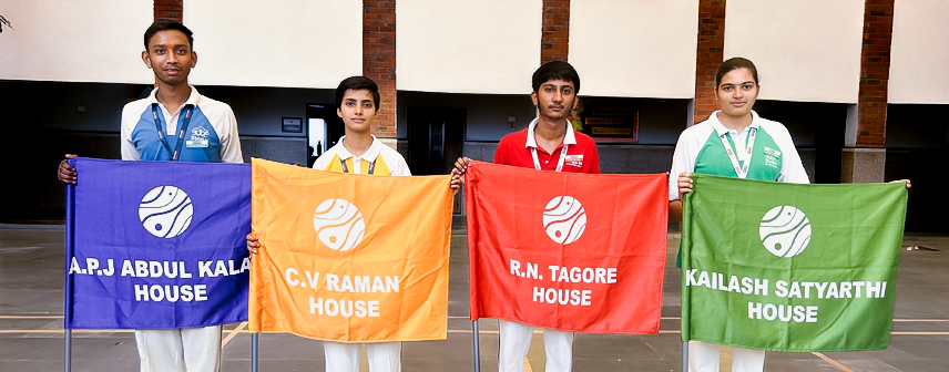 The students are allotted houses from class Nursery onwards. This system gives the students ample opportunities through various Inter House Competitions. Different cultural programmes are held to promote growth among students. The house system can contribute to the holistic development of students, as it encourages teamwork, resilience, leadership, sportsmanship, and other desirable qualities. It offers opportunities for students to discover and showcase their talents, develop self-confidence, and build lifelong friendships. Each house is usually given a unique name, often associated with a prominent figure.